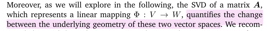 而且SVD可以用来quantifies the change between the underlying geometry of these two vector spaces。