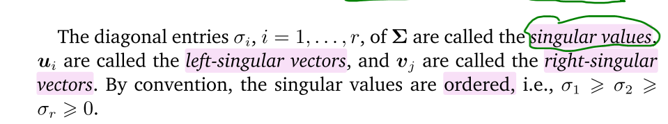其中\(\Sigma\)的对角线元素被称为singular values,