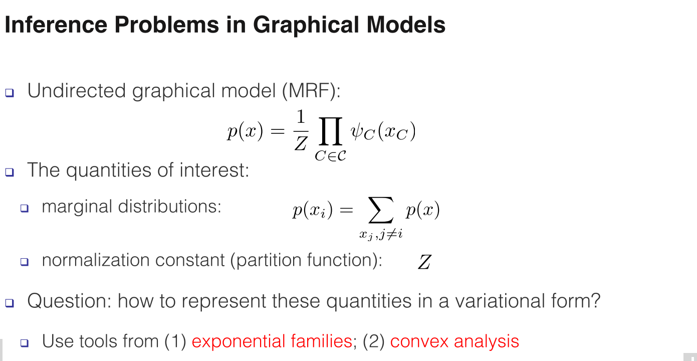 在graphical model中,inference或者说partition function往往特别难算,经常是指数级别的复杂度,因此我们尝试把partition function写成variational的形式