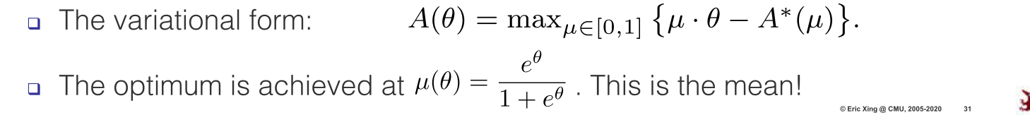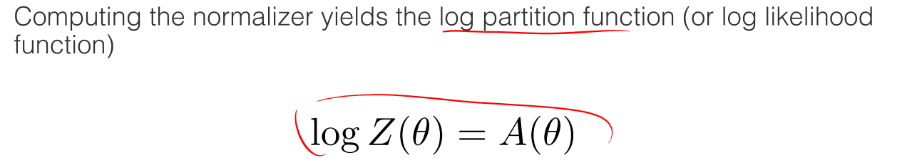 这个时候我们可以接触exponential family的性质,因为exponential的表达中就有一个现成的normalization term,A