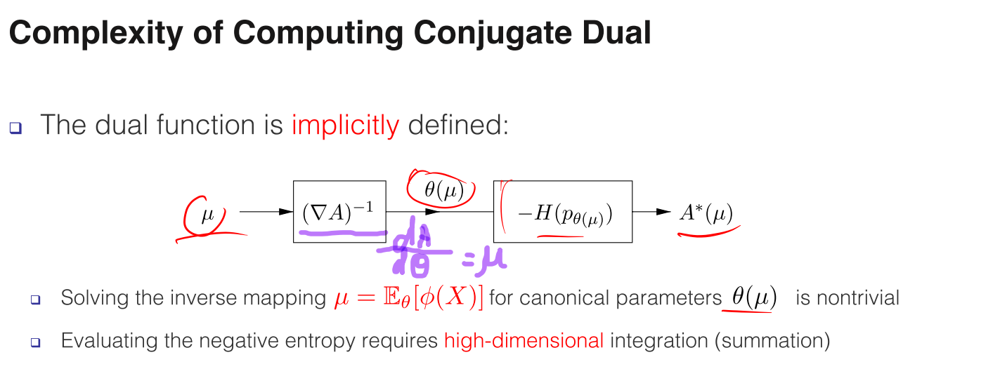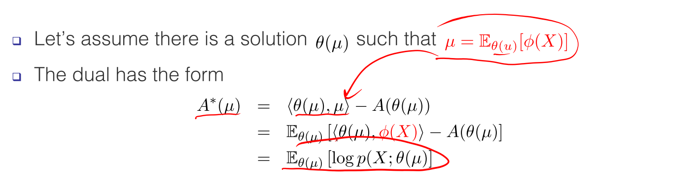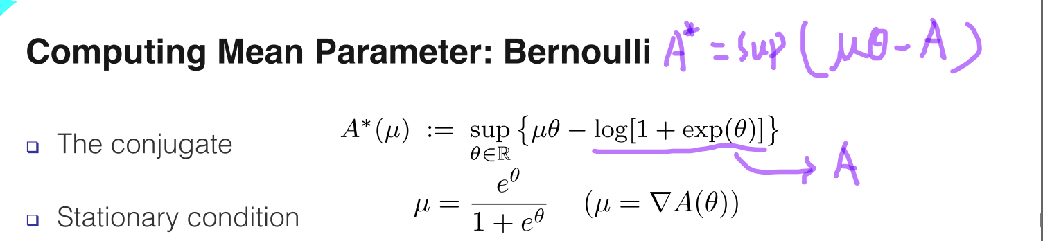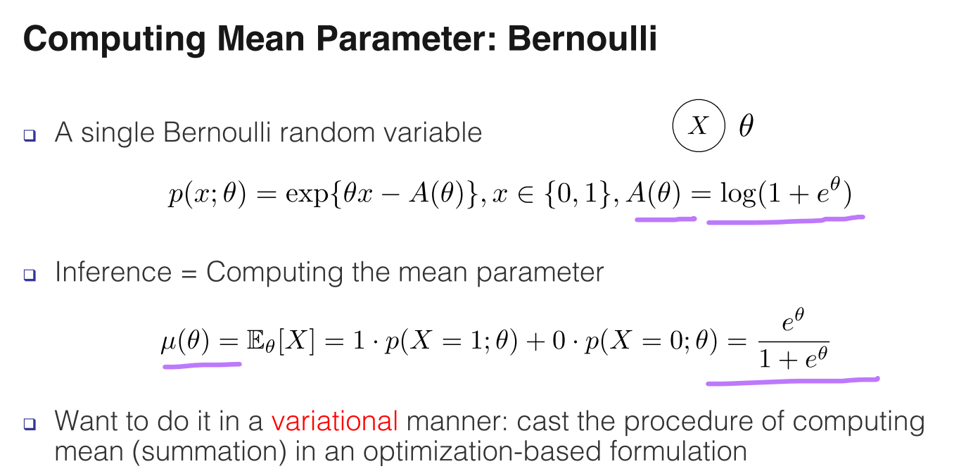为什么要选exponential family? 因为μ=sufficient statistic的期望=x的margin,而margin正是我们想算的。