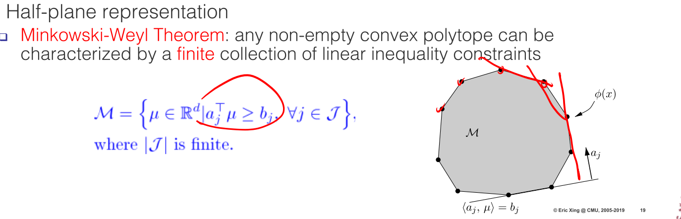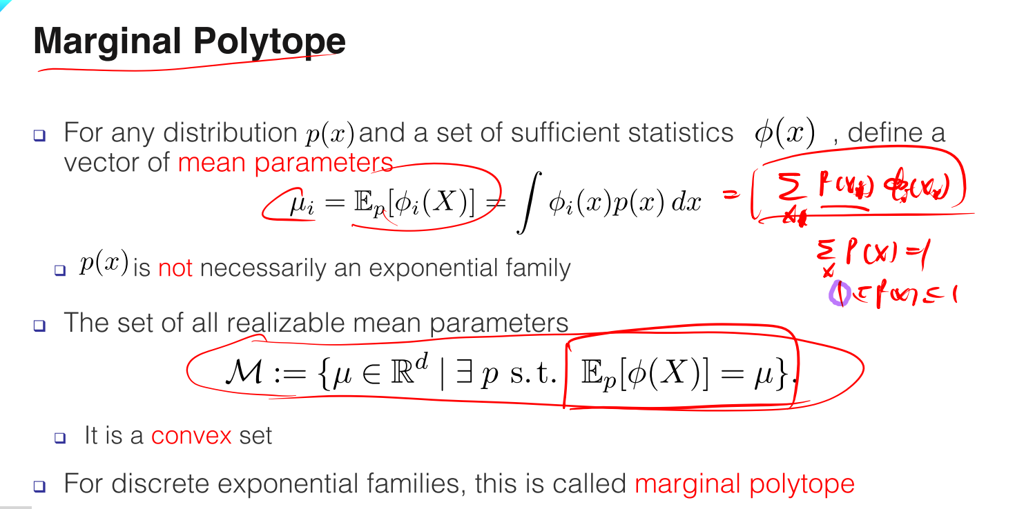 因此这个marginal polytope就是extreme points of sufficient statistics的Convex hull