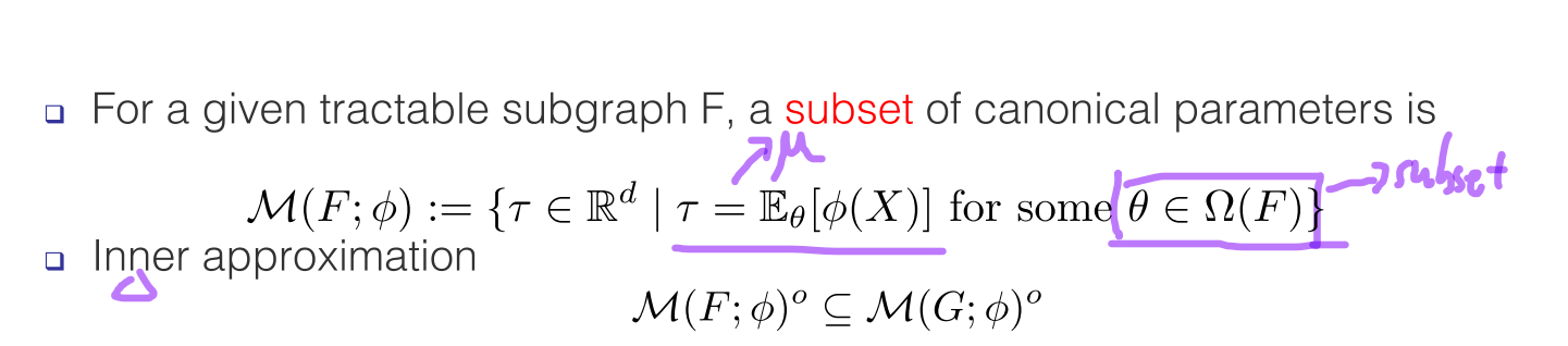 从这个视角,我们可以把marginal的approximation转化为对θ的集合的近似或者对μ的集合(polytope)的近似.